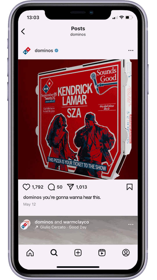Order a summer concert series pizza from Dominos and open it up to reveal your ticket — a QR code on the inside lid that takes you to the private, invite-only streaming show. You can now sit back and be serenaded by the sweet sounds of the show and your chewing.